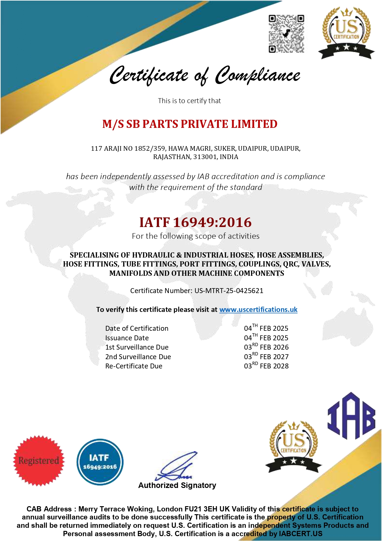 Our Certificate