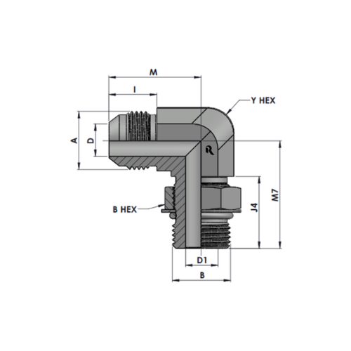 Tube O.D. A THREAD B THREAD Y Hex B Hex M M7 I J4 D Drill D1 Drill Part Number Working pressure in Bar
