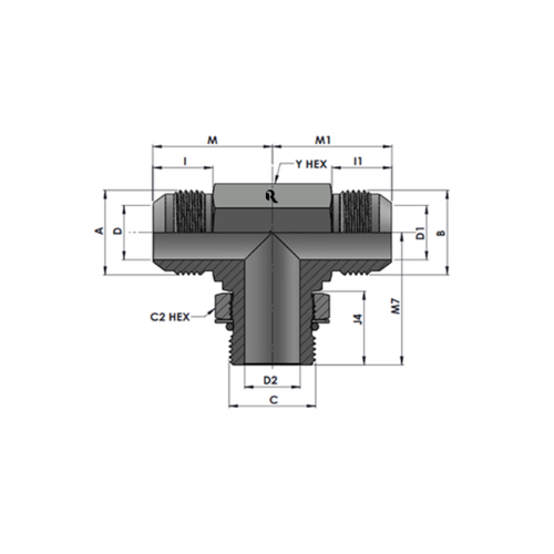 Tube O.D. A THREAD B THREAD C THREAD Y Hex C2 Hex M1  M7  I I1 J4 Hex D Drill D1 Drill D2 Drill Part Number Torque N-m Working pressure in Bar