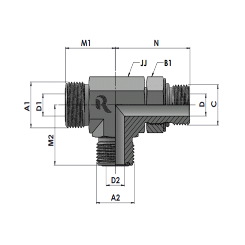 Tube O.D. A1 THREAD C THREAD A2 THREAD M1 LENGTH N LENGTH M2 LENGTH D1 DRILL D DRILL D2 DRILL JJ Hex B1 Hex Part Number Working pressure in Bar